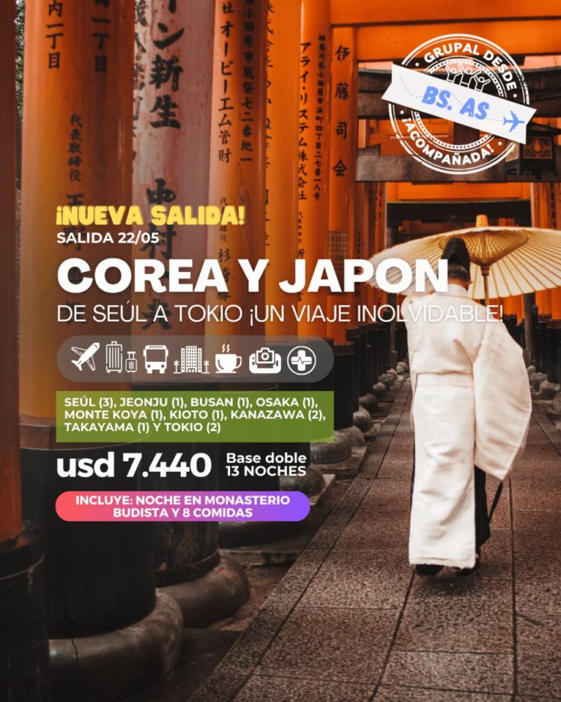 Embárcate en una aventura inolvidable que te llevará a través de la modernidad y las tradiciones milenarias de Corea del Sur y Japón. Únete a nuestra salida grupal acompañada y descubre templos históricos, vibrantes ciudades y paisajes cautivadores.